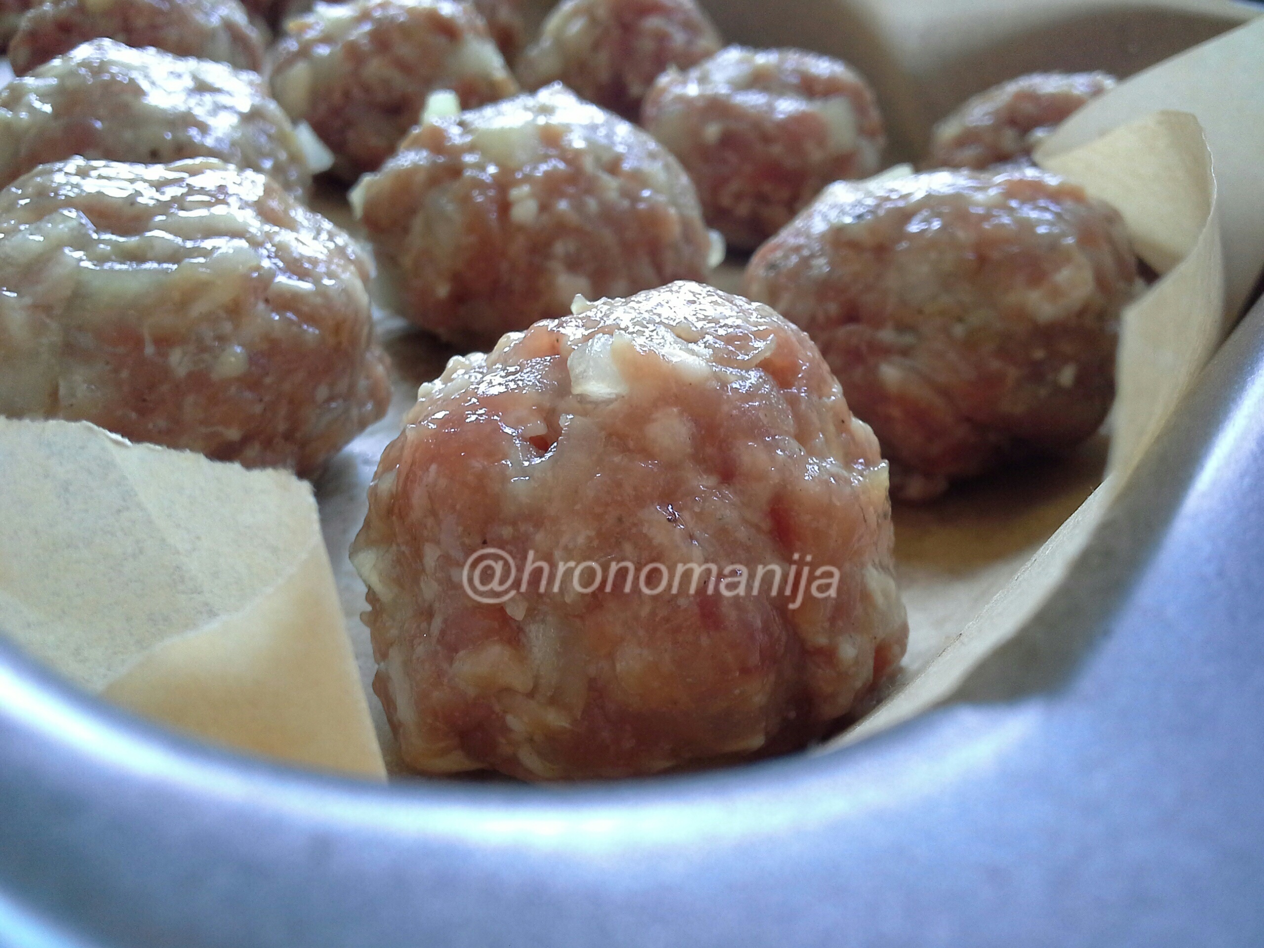 Kada prođe tih par sati formirati kuglice od mesa i ređati u pleh na pek papir.