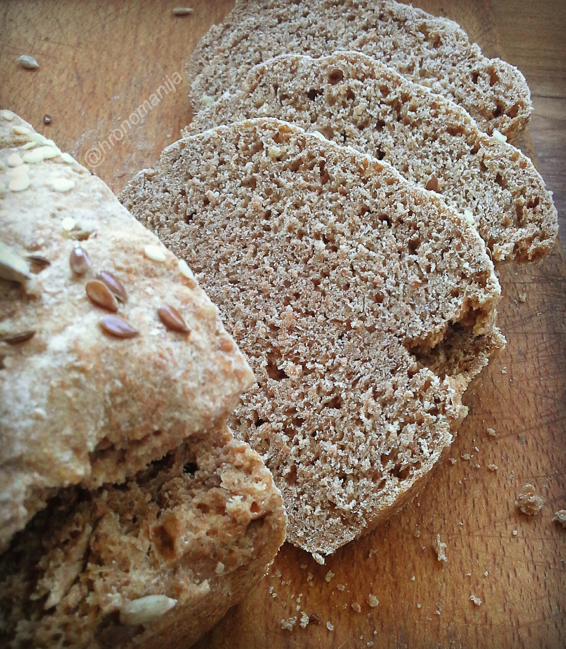 Ubaciti hleb u rernu zagrejanu na 180° i peći 10 minuta na toj temperaturi, a onda smanjiti na 150° i peći jos 45minuta. Ovo vreme pečenja uzmite sa rezervom jer to ipak zavisi i od same rerne pa za svaki slučaj proverite čačkalicom da li je hleb pečen u sredini.